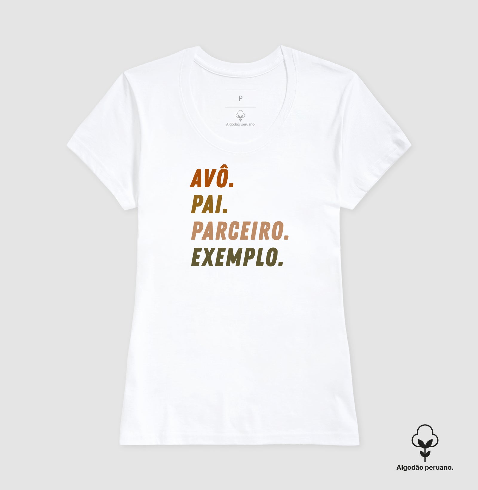 Nossas camisetas são confeccionadas com Algodão Peruano, reconhecido mundialmente como um dos melhores do mundo. Sua fibra mais longa e pura oferece um toque ultramacio, acabamento elegante e alta durabilidade — mesmo após muitas lavagens.